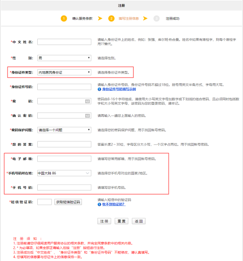新報名的考生報名時需要在“中注協報名系統”注冊新賬號,填寫身份證件號碼、電子郵箱、手機號碼所在地、手機號碼等信息,如下圖所示: