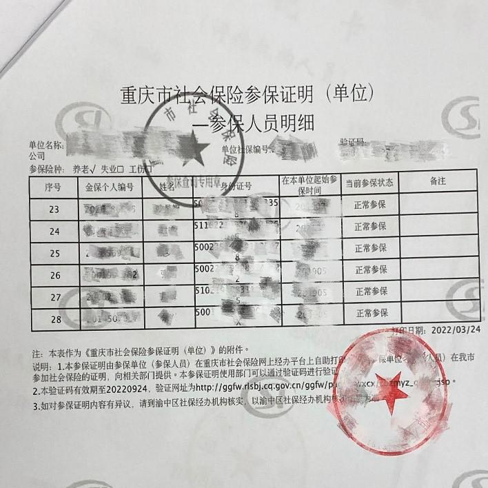 (三)由于本年度實行網上年檢,除存在有注銷、轉非的注師需單獨提供紙質材料外,本通知第五條要求提供的年檢材料只需上傳至年檢系統。由事務所統一參保的證明可上傳“重慶市社會保險參保證明(單位)——參保人員明細”,如圖示: