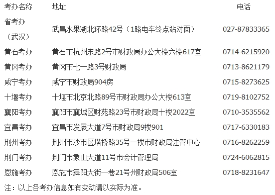 2、地點和聯系方式:武漢考區考生請至省考辦申辦,其他考生請到最后科目通過的考區考辦申辦。各考辦具體地址及聯系方式如下: