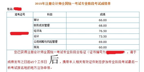 先簡單介紹下自己吧,本人畢業于某二本大學,學的計算機,去年8月本只想考個會計從業資格,機緣巧合下卻決定挑戰CPA,隨后開始了一年多的網校學習生活,期間依次通過了會計從業資格、會計初級職稱,最終如愿以償通過CPA專業階段6門,成績如下: