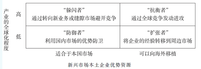 新興市場本土企業優勢資源適合于本國市場,產業的全球化程度低的情況下,本土企業適合采用的戰略是( )。
