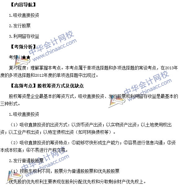 稅務師考試《財務與會計》高頻考點:股權籌資方式及優缺點