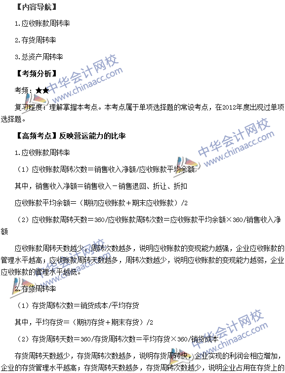 2015稅務師考試《財務與會計》高頻考點:反映營運能力的比率