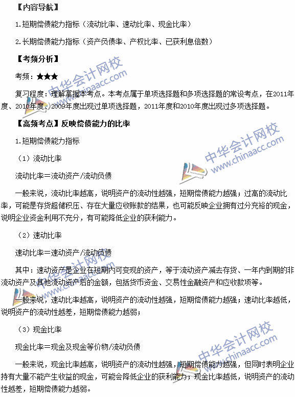 2015稅務師考試《財務與會計》高頻考點:反映償債能力的比率