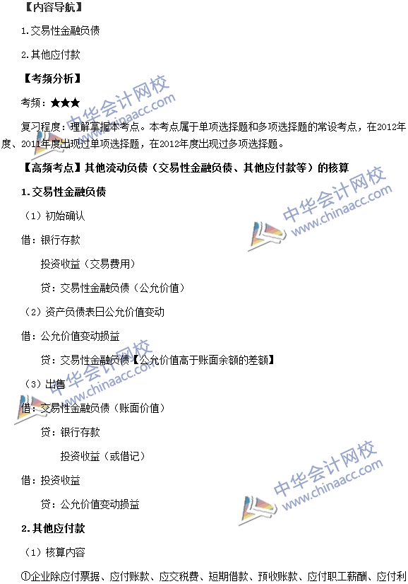 我們一起來學習2015稅務師考試《財務與會計》高頻考點:其他流動負債(交易性金融負債、其他應付款等)的核算,本考點屬于《財務與會計》第十三章流動負債的內容。