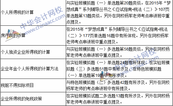 2015年稅務師考試《稅法二》試題涉及考點總結