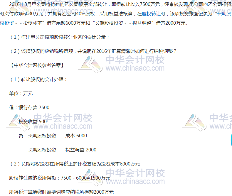 【點評】本題考核“長期股權投資賬務處理”和“應納稅所得額調(diào)整”,該題目所涉及知識點在下列正保會計網(wǎng)校(www.sgjweuf.cn)2017年稅務師《涉稅服務實務》輔導中均有體現(xiàn):