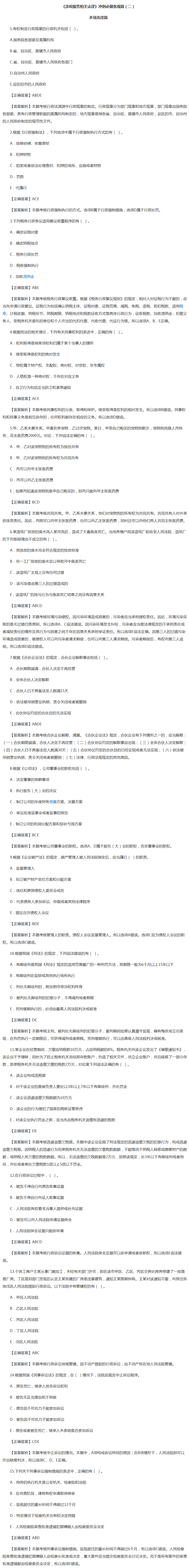 2018年稅務師備考只剩下半個月了,到了全面做題的時刻了!實踐是檢驗知識點是否掌握的最好方法之一。正保會計網校教務老師廢寢忘食為大家整理了稅務師考前必做題目,方便大家從容應對考試,考前一波猛沖!以下是《涉稅服務相關法律》科目必做客觀題。想看稅務師考前大模考、易錯題、稅務師試題等,請前往2018稅務師考試考前沖刺題典>>