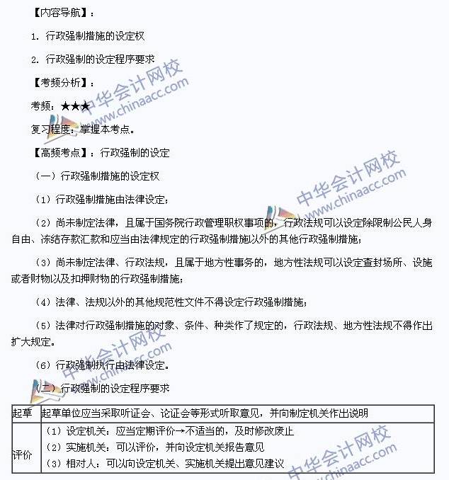 2014年注稅考試《稅收相關法律》高頻考點:行政強制的設定