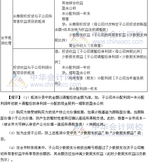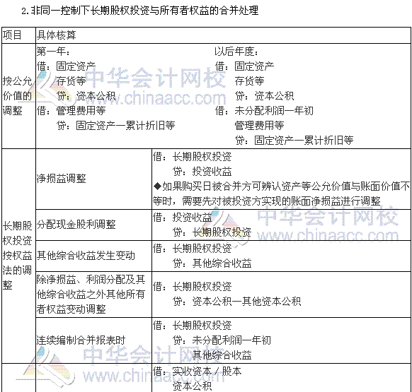 2.非同一控制下長期股權投資與所有者權益的合并處理