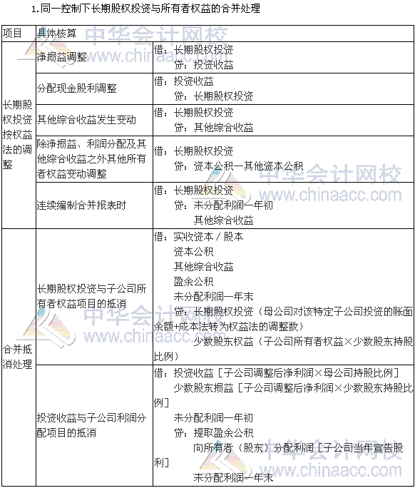 1.同一控制下長期股權投資與所有者權益的合并處理