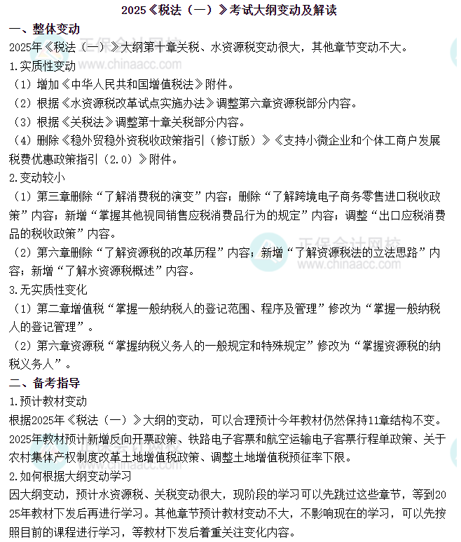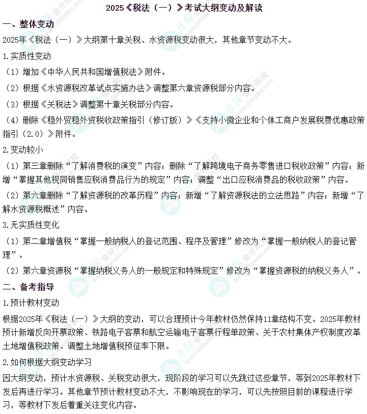 2025年稅務師《稅法一》考試大綱變動章節多嗎?大綱變化點主要在哪里?正保會計網校為同學們準備了2025稅務師《稅法一》考試大綱變動解讀的內容,希望大家認真看一看,明確備考重點,才能確定接下來怎么學習。