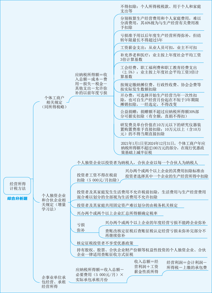 下面是2023年稅務(wù)師《稅法二》第二章思維導(dǎo)圖:經(jīng)營所得的計稅方法