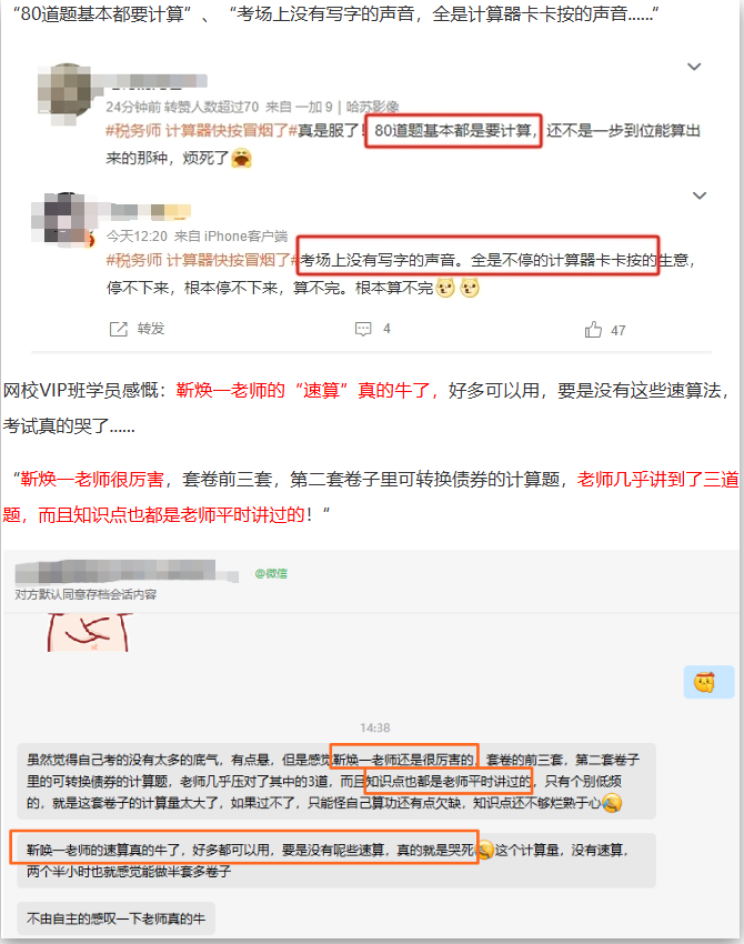 計算量大,且考題擅長在細微處設置“陷阱”。在巨大的時間壓力下,保持頭腦清醒、運算精準、審題細致,是對考生心理素質、做題技巧和熟練度的三重考驗。任何一個環(huán)節(jié)的疏忽都可能導致“一步錯,步步錯”,痛失分數(shù)。23年稅務師考試《財務與會計》計算量大上了熱搜榜: