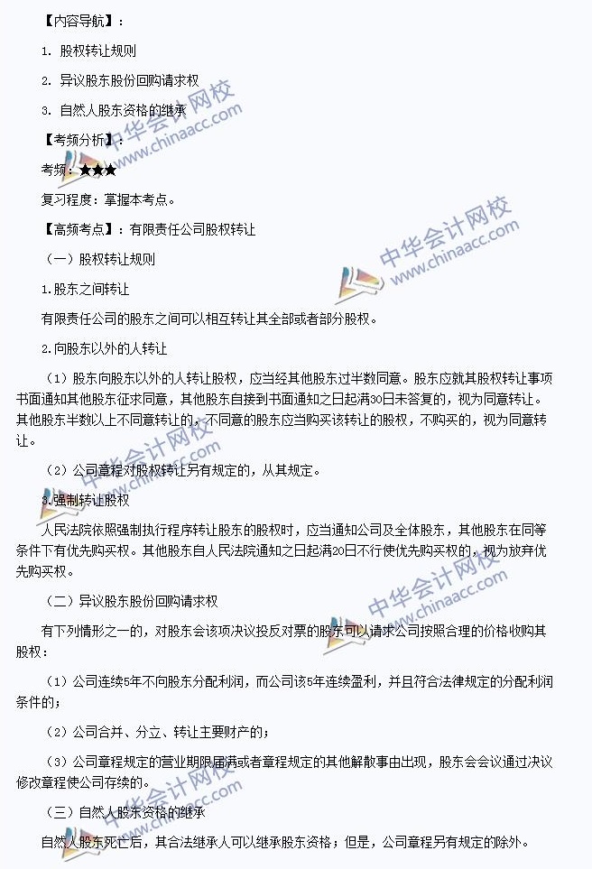 注稅考試《稅收相關法律》高頻考點:有限責任公司股權轉讓