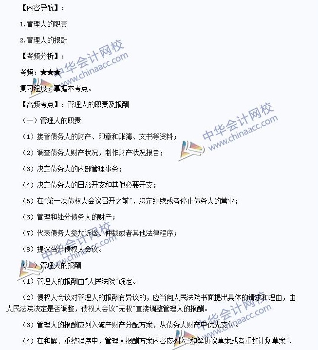 注稅考試《稅收相關法律》高頻考點:管理人的職責及報酬