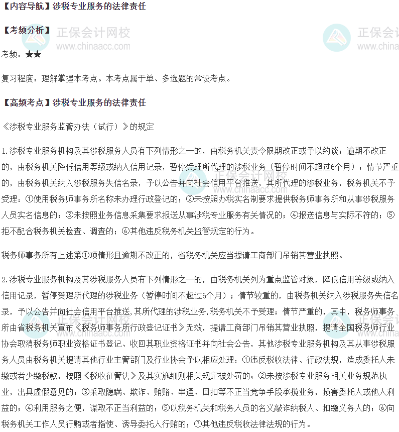 距離2023年稅務(wù)師考試時(shí)間近了,備考時(shí)間也越來(lái)越少,同學(xué)們加緊備考節(jié)奏,爭(zhēng)取8月底前把課本內(nèi)容都過(guò)一下,然后查漏補(bǔ)缺薄弱知識(shí)點(diǎn),這段時(shí)間,對(duì)于稅務(wù)師考試每年經(jīng)常考的知識(shí)點(diǎn),要熟練掌握。下面是2023年稅務(wù)師《涉稅服務(wù)實(shí)務(wù)》第二章高頻考點(diǎn):涉稅專(zhuān)業(yè)服務(wù)的法律責(zé)任,快復(fù)習(xí)吧,查漏補(bǔ)缺!