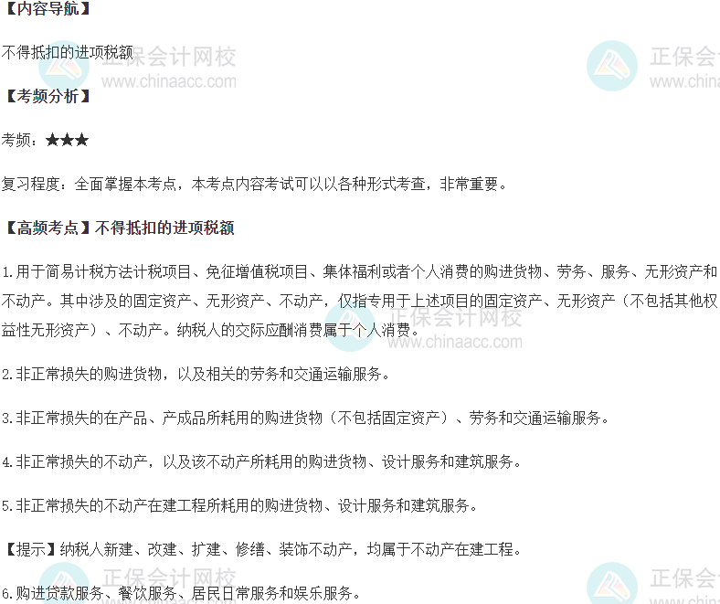 2023稅務師《稅法一》增值稅高頻考點:不得抵扣的進項稅額