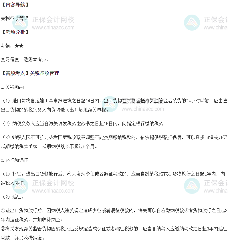 2023稅務師《稅法一》第十章高頻考點:關稅征收管理