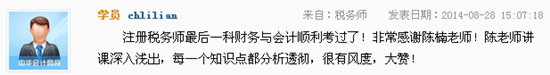 他給人的感覺壞壞的,但講解的時候非常認真,一絲不茍,真是一位嚴師;他雖然不是很風趣,但偶然出現的一個舉例、一句笑談,會顯得非常平易近人,讓人經久不忘,真是一位益友;他的講解獨到深刻、條理清晰、深入淺出、通俗易懂,是一名不可多得的實力派青年專家。他就是陳楠老師!