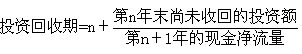 | 計算方法 | ①若各年現金凈流量相等: 投資回收期(年)=投資總額÷年現金凈流量 ②若各年現金凈流量不相等: ![]() |