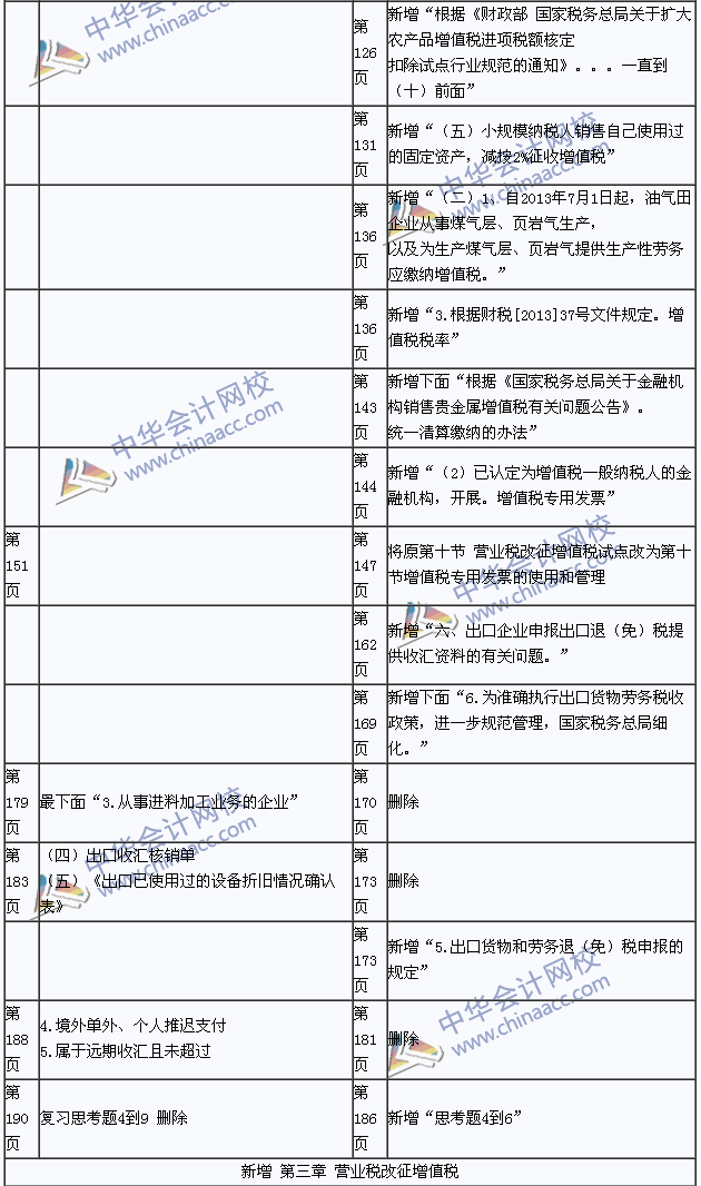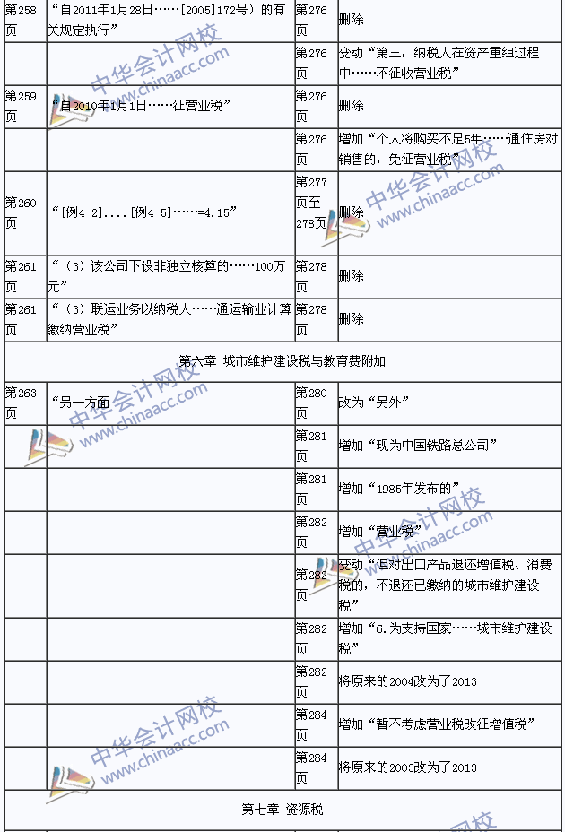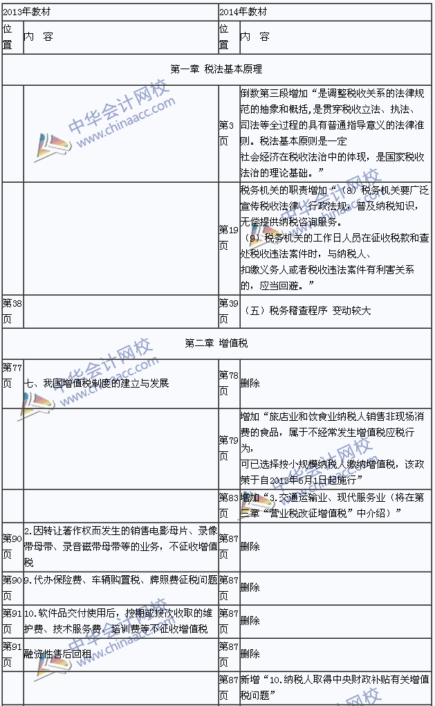 2014年教材和2013年教材相比,發(fā)生了很大的變化,營業(yè)稅改征增值稅的內(nèi)容單獨作為一章。其他章節(jié)也有不少變動。