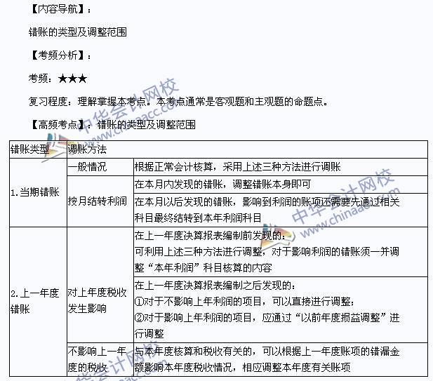 2014注稅《稅務代理實務》高頻考點:錯賬的類型及調整范圍
