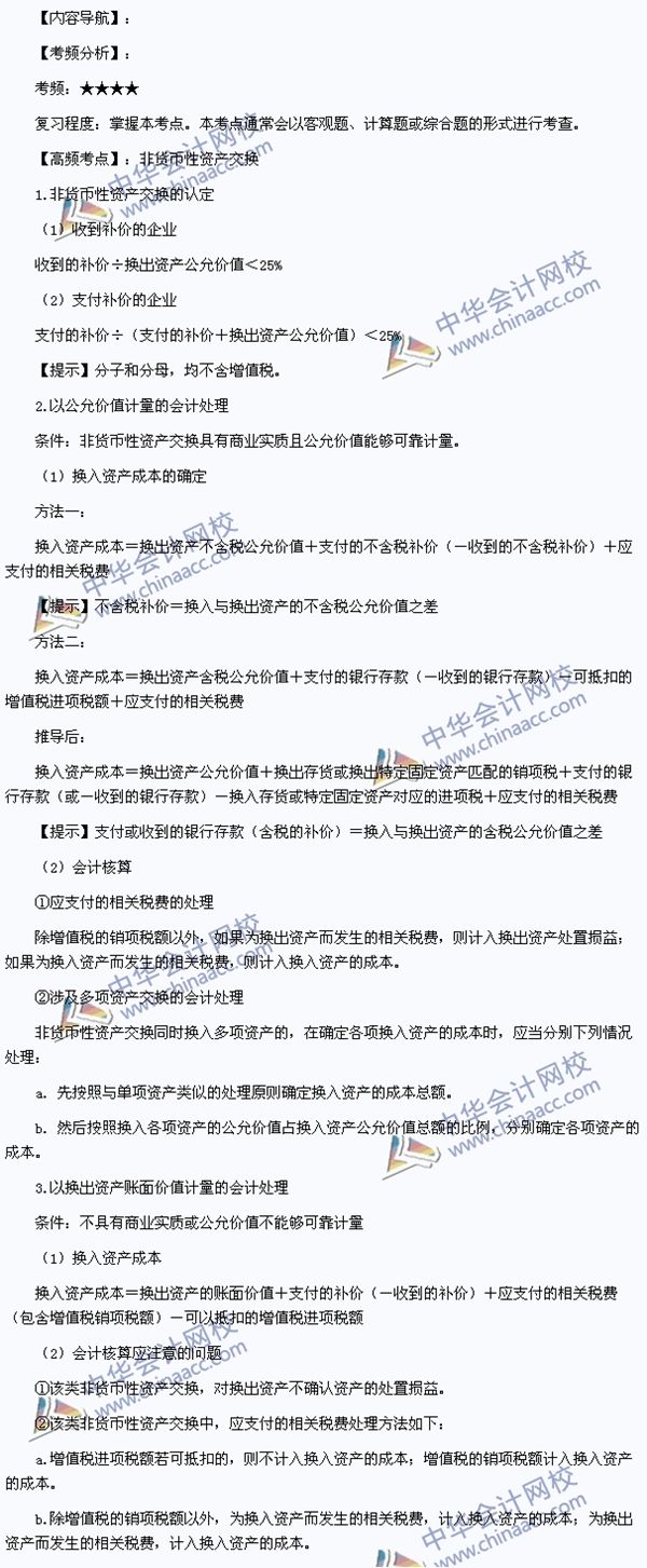2014注冊稅務師考試《財務與會計》高頻考點:非貨幣性資產交換