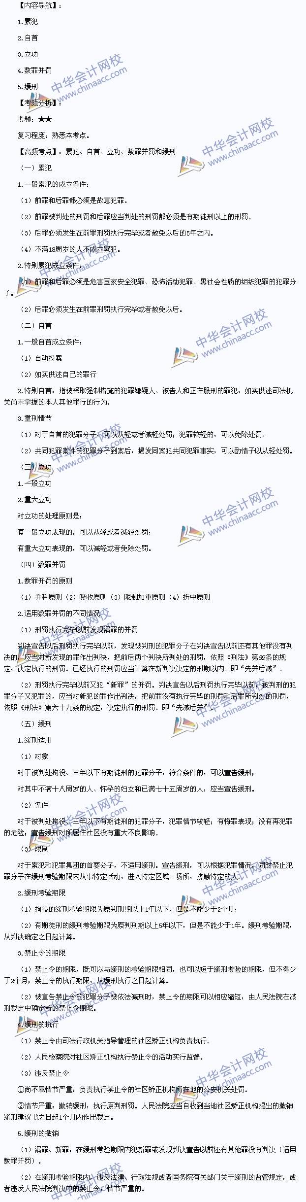 《稅收相關法律》高頻考點:累犯、自首、立功、數罪并罰和緩刑