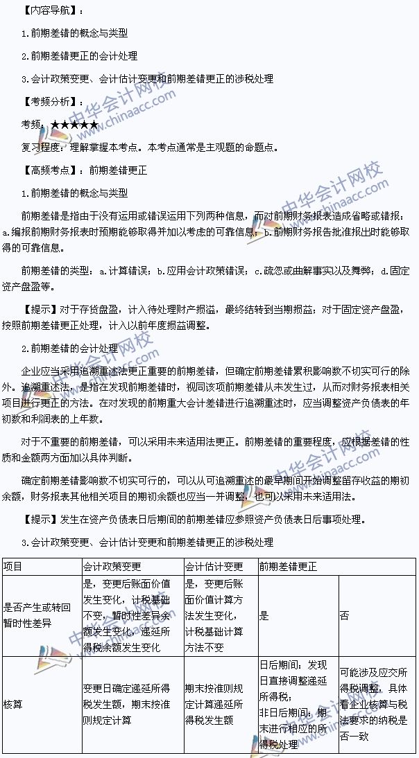 2014年注冊稅務師考試《財務與會計》高頻考點:前期差錯更正