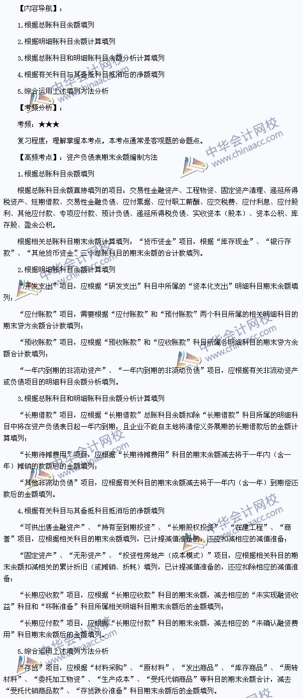 2014注稅《財務與會計》高頻考點:資產負債表期末余額編制方法