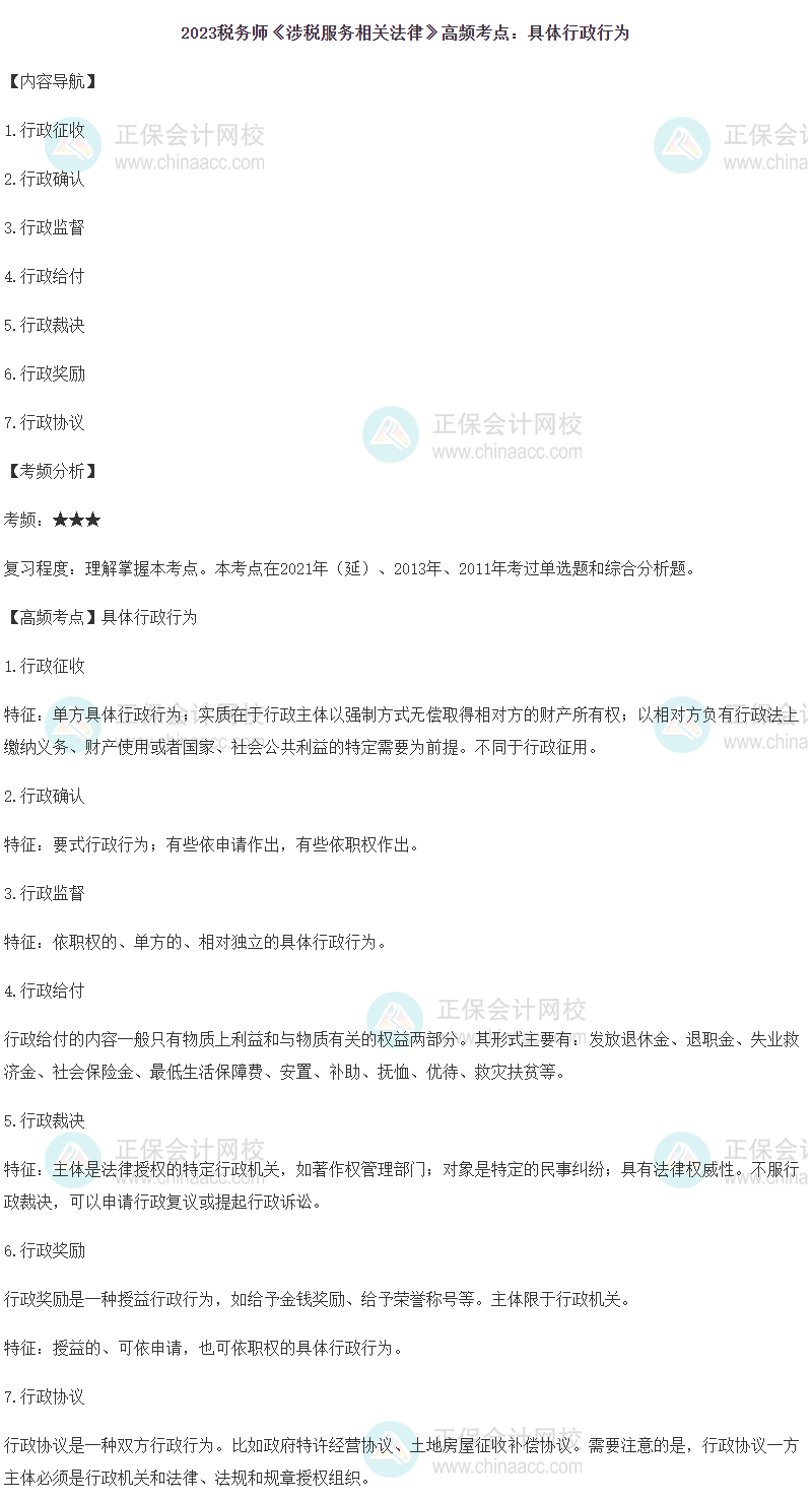 2023稅務師考試《法律》第一章高頻考點:具體行政行為