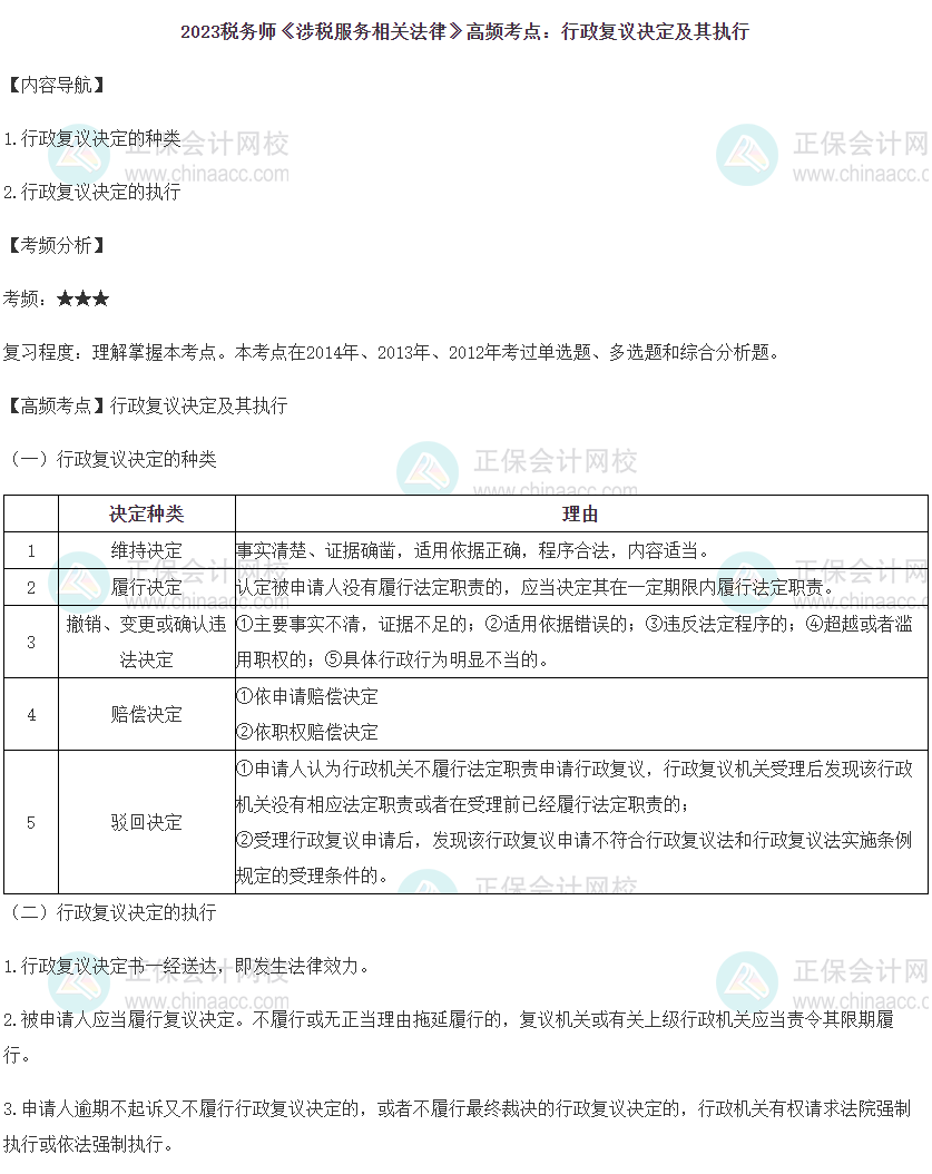 2023稅務師考試《法律》第五章高頻考點:行政復議決定及其執行