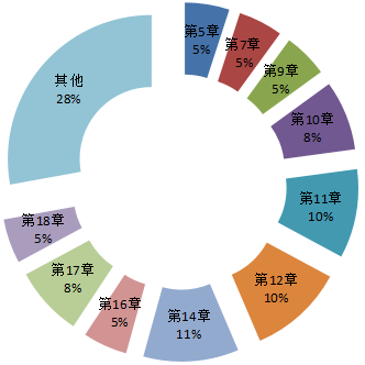第五章 投資管理、第七章 財務分析與評價、第九章 流動資產(一)、第十章 流動資產(二)、第十一章 非流動資產(一)、第十二章 非流動資產(二)、第十四章 非流動負債、第十六章 收入、費用、利潤和產品成本、第十七章 所得稅、第十八章 會計調整。