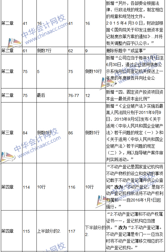 第二章變動不大。新增了《國務院關于印發注冊資本登記制度改革方案的通知》、固定資產投資項目資本金。