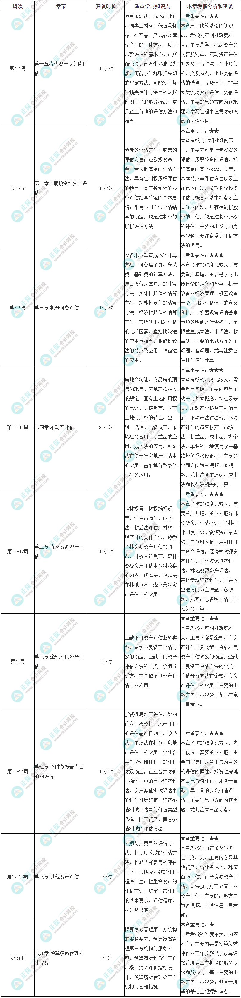 2024年《資產評估實務(一)》預習階段學習計劃表
