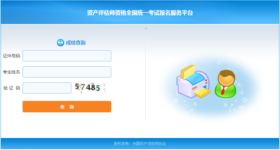 考生可登錄中國資產評估協會(以下簡稱中評協)網站“資產評估師資格全國統一考試服務平臺”,點擊“成績查詢”欄目,查詢2018年考試成績。