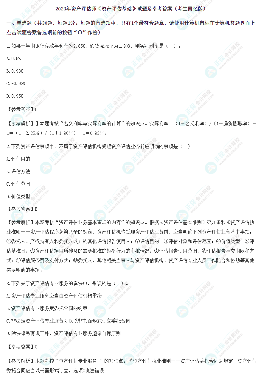 2023資產(chǎn)評(píng)估師《資產(chǎn)評(píng)估基礎(chǔ)》考試已經(jīng)結(jié)束了,大家考得怎么樣?是不是想快點(diǎn)看到試題及參考答案呢?正保會(huì)計(jì)網(wǎng)校根據(jù)考生反饋,整理了2023資產(chǎn)評(píng)估師《資產(chǎn)評(píng)估基礎(chǔ)》試題及參考答案供大家參考,趕快來(lái)估估分吧!