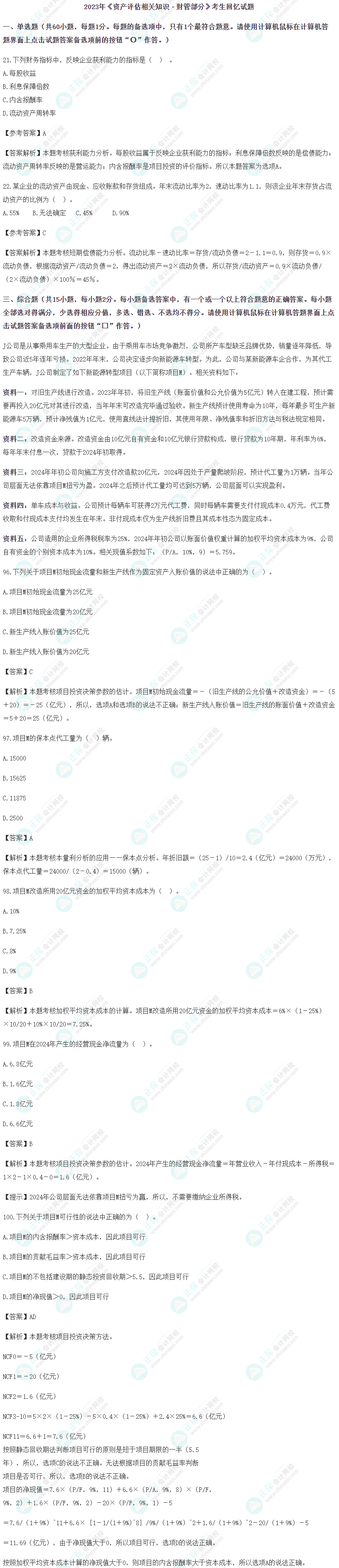 2023資產評估師《資產評估相關知識》考試已經結束了,大家考得怎么樣?是不是想快點看到試題及參考答案呢?正保會計網校根據考生反饋,整理了2023資產評估師《資產評估相關知識》試題及參考答案供大家參考,趕快來估估分吧?