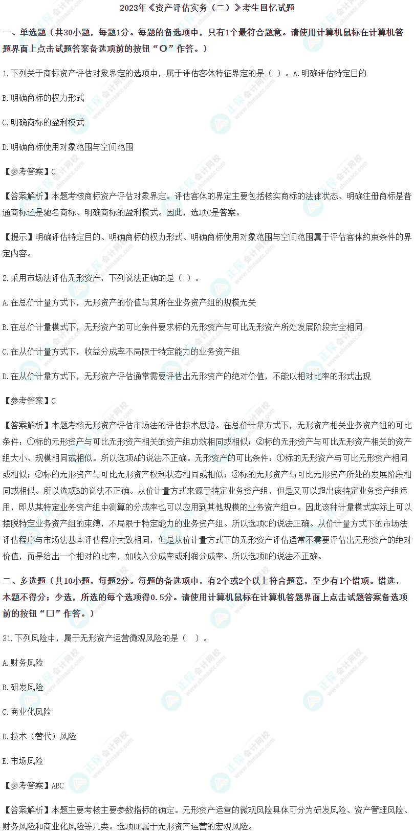 2023資產(chǎn)評(píng)估師《資產(chǎn)評(píng)估實(shí)務(wù)二》考試已經(jīng)結(jié)束了,大家考得怎么樣?是不是想快點(diǎn)看到試題及參考答案呢?正保會(huì)計(jì)網(wǎng)校根據(jù)考生反饋,整理了2023資產(chǎn)評(píng)估師《資產(chǎn)評(píng)估實(shí)務(wù)二》試題及參考答案供大家參考,趕快來估估分吧。