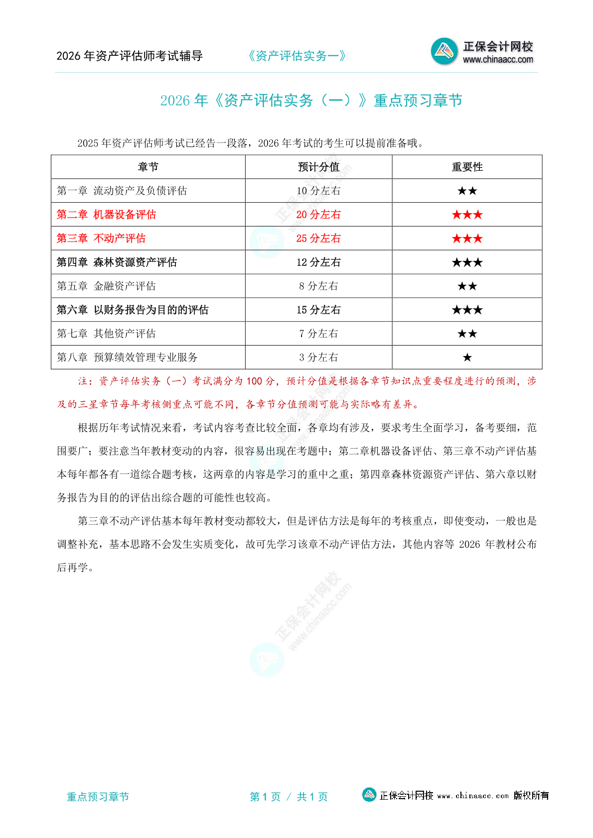 2026年《資產評估相關知識》重點預習章節